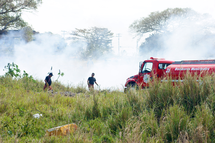 Una espesa columna de humo se veía a la distancia debido a la combustión de dichos materiales, ocasionando un problema a las personas que viven aledañas al terreno y creando una enorme contaminación a la ciudad.