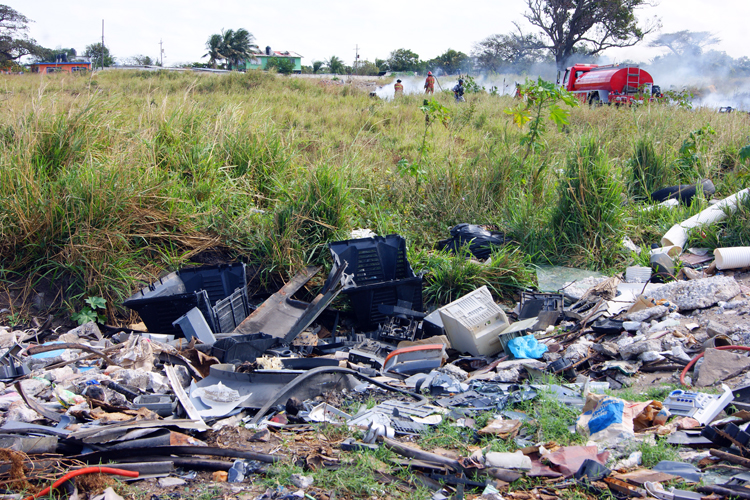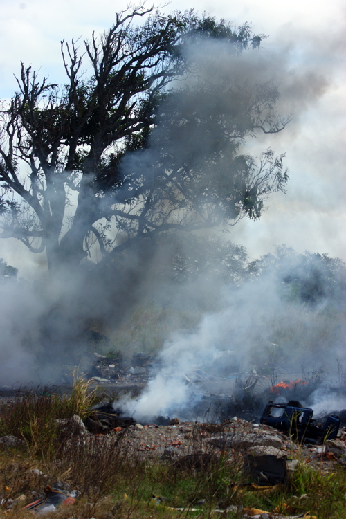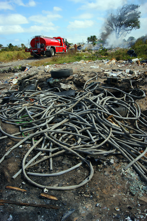 Un enorme terreno ubicado entre Las Bajadas y el Nuevo Veracruz, se incendio el día de hoy y es que dicho espacio es ocupado como basurero clandestino, donde se pueden encontrar computadoras, cables electrónicos, plumas de pollos, material aislante de refrigeradores y sobre todo una enorme cantidad de cristales y llantas de diferentes tamaños .