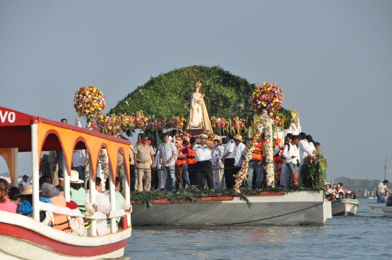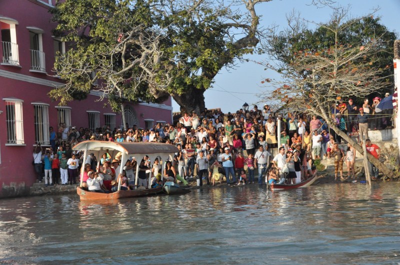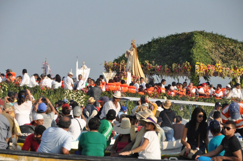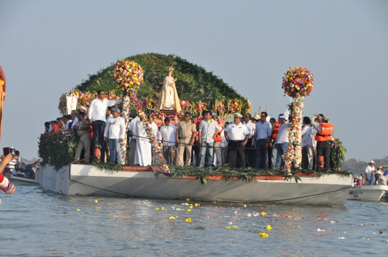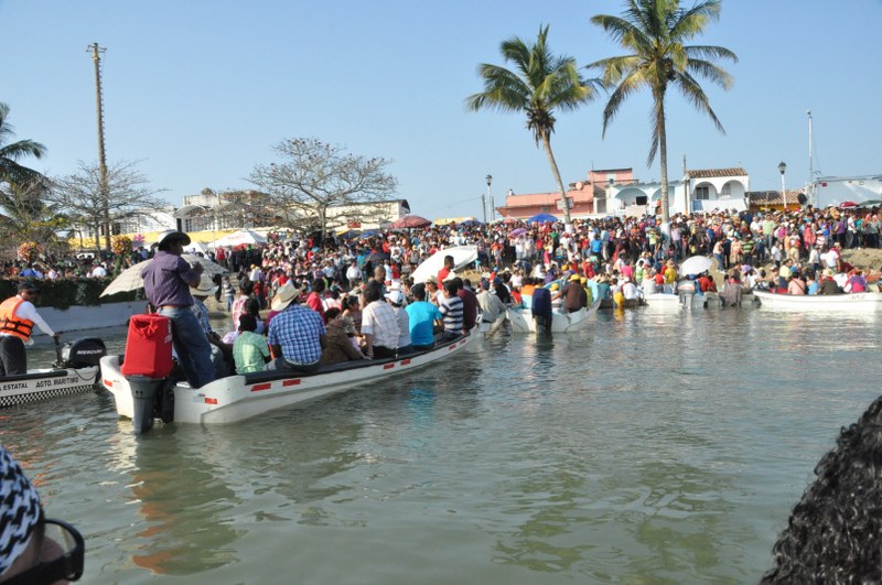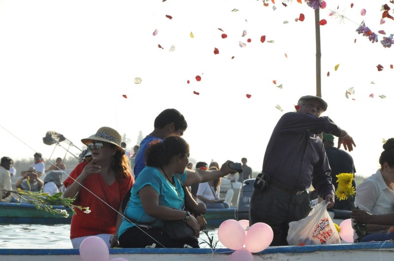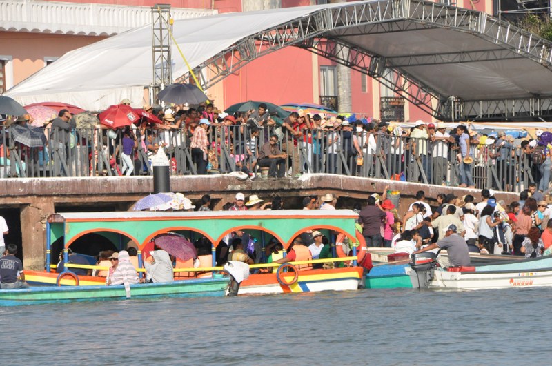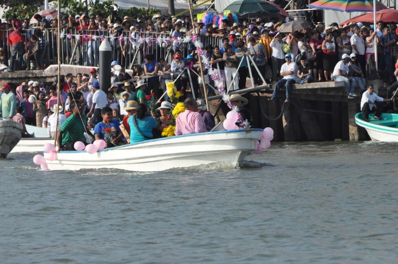 Las lanchas ya se encuentran llenas a la orilla de la panga que está completamente adornado de flores estratégicamente acomodadas para formar adornos alusivos a la fiesta y mientras en el rio, las personas esperan ansiosas a que la majestuosa imagen de la Virgen de la Candelaria comience a dar su paseo en el rio.