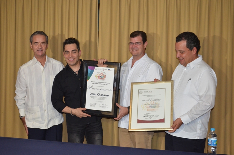 Durante la rueda de prensa, el Secretario de Turismo y Cultura del Estado, Harry Grappa Guzmán; y el Presidente Municipal de Veracruz, Ramón Poo Gil, y el Presidente del Comité de Carnaval, José Salvatori Bronca, entregaron un reconocimiento al actor y comediante Omar Chaparro por su participación en el Carnaval de Veracruz 2014, en su 90 edición.