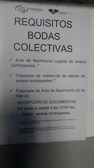 Los requisitos para las bodas colectivas son