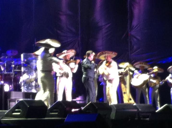 Posteriormente su mariachi apareció en el escenario y los asistentes emocionados aplaudieron y gritaron nuevamente la admiración que tienen por el artista, con un cambio de ropa, el cantante se reincorporo arrancando con el tema “México” y un popurrí de sus mejores éxitos con el mariachi con temas como “México en la piel” “Cielito lindo” “Viva México” “Que bonita es mi tierra”, por casi media hora.