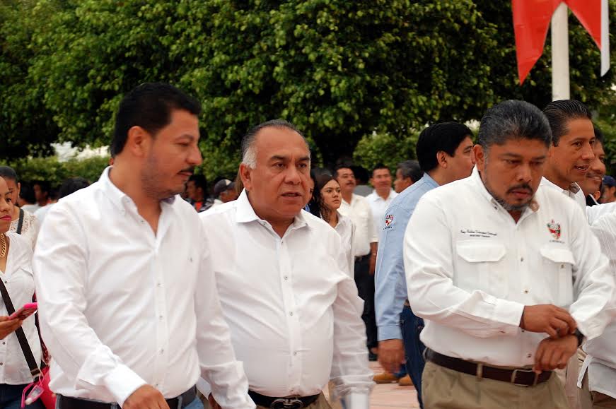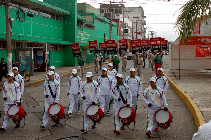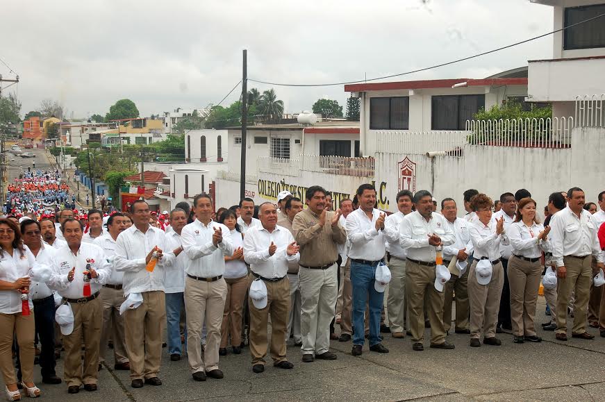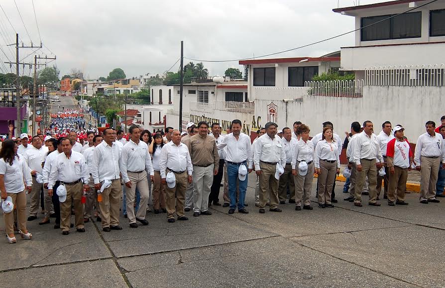 Distintas personalidades de petroleros y autoridades municipales estuvieron al frente del contingente, entre ellos el alcalde, Héctor Damián Cheng Barragán, así como el ex alcalde de este municipio, José Luis Sáenz soto.