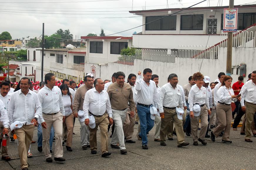 Convocados por el Presidente del Comité Local de Vigilancia de la Sección 10, Jorge Alberto Wade Zúñiga, en sustitución de, Jorge Wade González, Presidente del Frente Liberal Sindicalista (FLS), caminaron varios kilómetros apoyados por unidades de Transito Estatal a cargo de, Martín Ceballos de la Cruz.