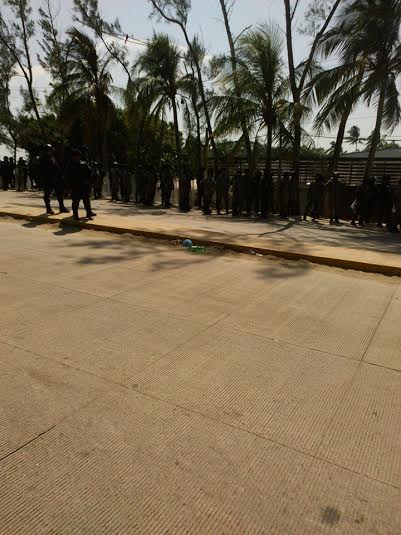 Policías Estatales y de la Fuerza Civil resguardaron la entrada al puerto de Coatzacoalcos, minutos después de las 15:00 horas, luego que granaderos desalojaron por la fuerza a los manifestantes que mantuvieron bloqueada la carretera estatal Coatzacoalcos-Minatitlán, a la altura del puente Calzadas desde el domingo a las 20:00 horas.
