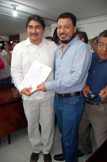 La mañana de este jueves, el candidato del PRI, José Luis Sáenz Soto, recibió en el 14 distrito del Instituto Nacional Electoral (INE), su constancia como Diputado Federal de mayoría relativa- periodo 2015-2018- de manos del vocal ejecutivo, David Goy Herrera, quien hizo la entrega del documento.