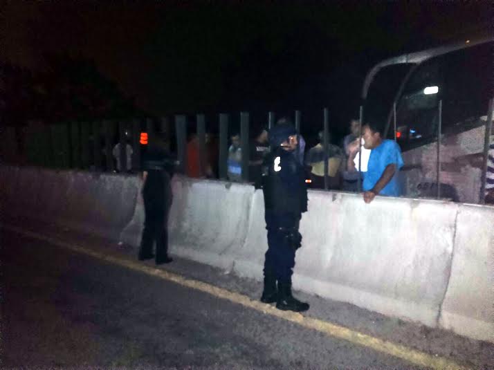 Policías rescatan a familia Chiapaneca y reparten víveres entre viajeros.
