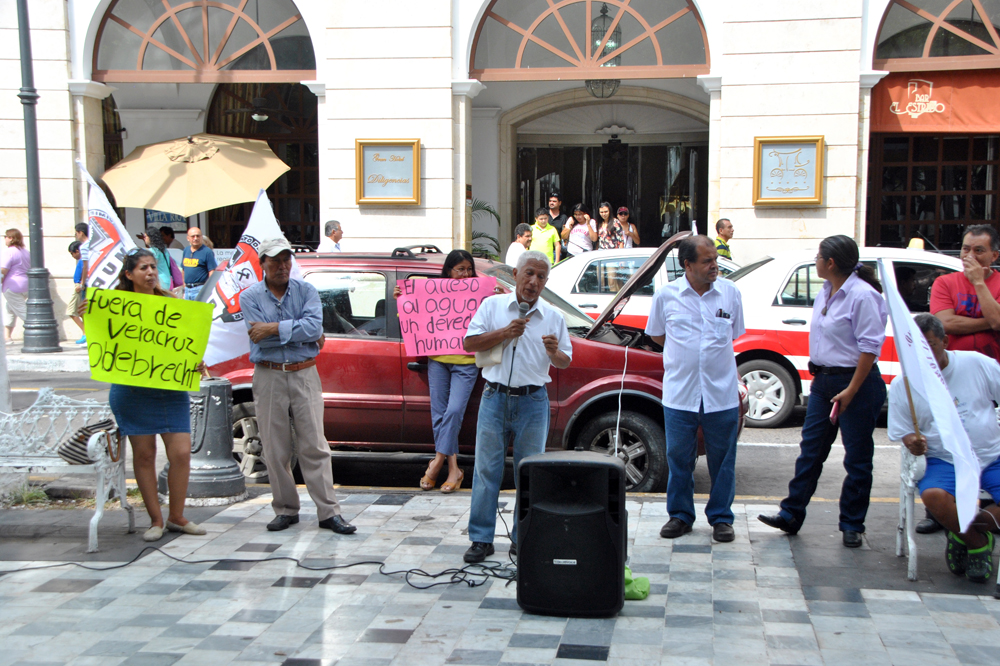 Miembros de la unión nacional lombardista y al movimiento de unidad popular se manifestaron frente al palacio municipal de Veracruz en contra de la privatización del agua, pues atenta contra los derechos humanos.