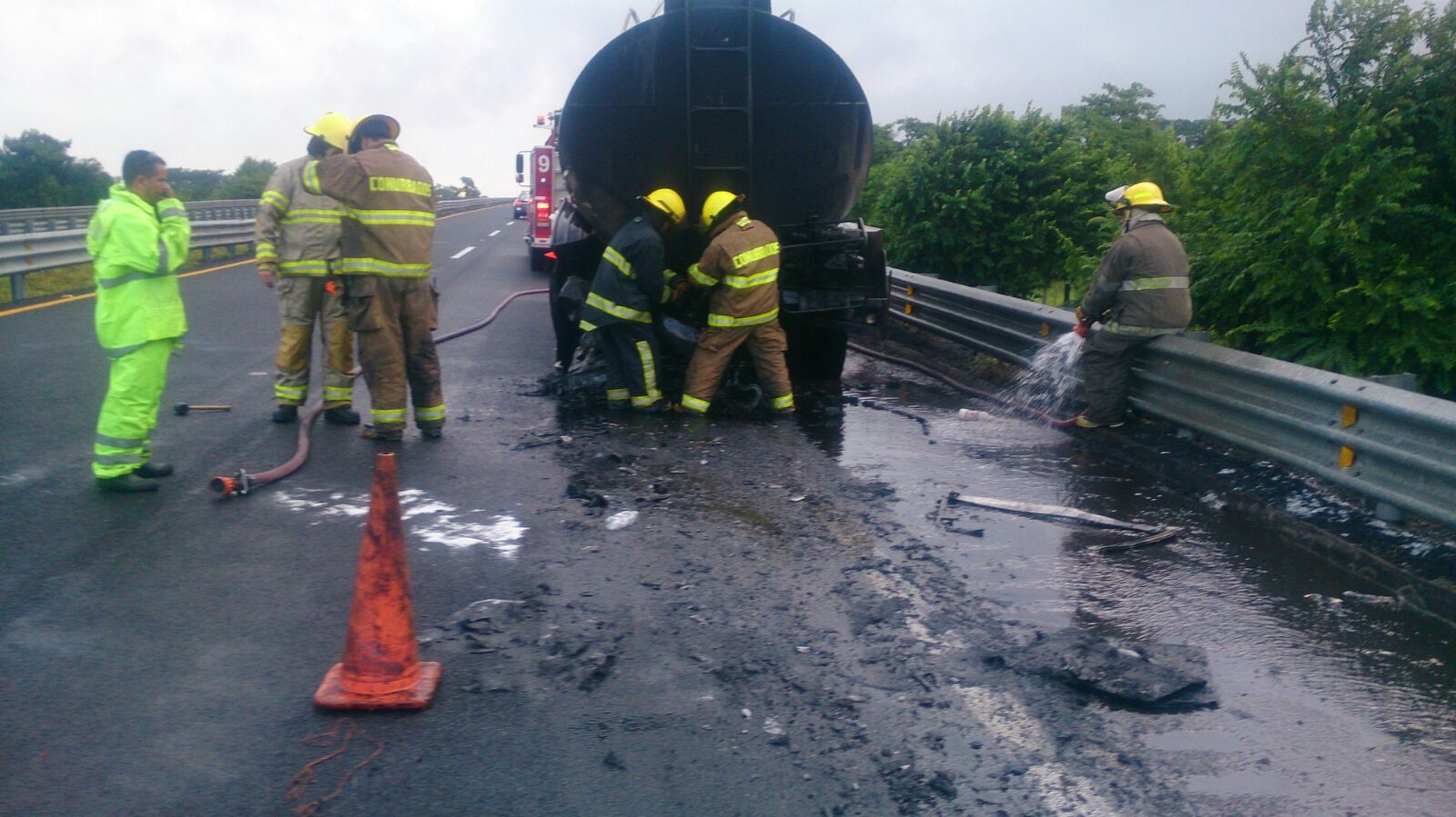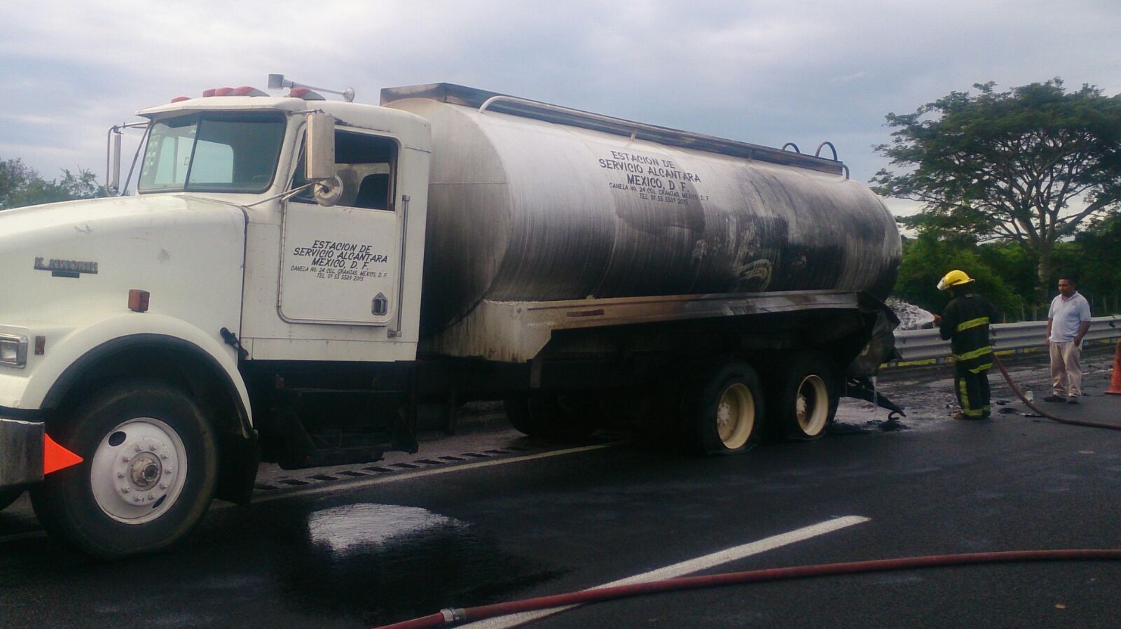 Bomberos  Conurbados, atendieron el llamado de un accidente en la autopista a cinco minutos de la caseta de Veracruz hacia La Tinaja, cuando un auto Chevrolet Tornado , se estrella por alcance a camión cisterna, con razón social Estación de Servicio Alcántara México D. F. Pipa Kenworth JS50036: sin Rombos, ni señalamiemtos correspondientes , que trasportaba gasolina, quedando totalmente calcinado el auto e incendiada la cisterna, alrededor de las 5:30 de la mañana.