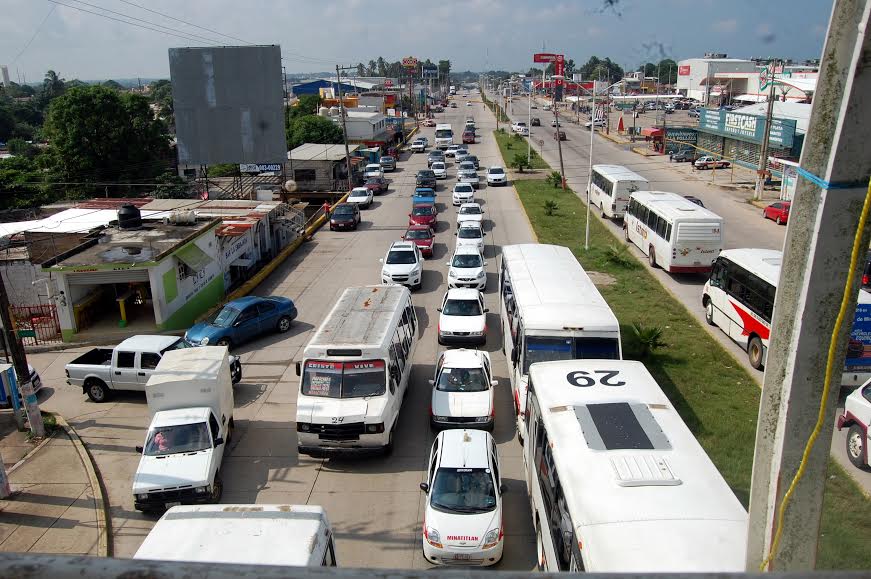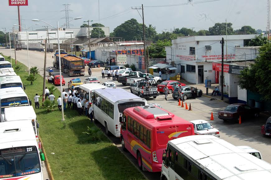 Los chóferes llegaron y colocaron sus unidades a media calle, frente al cuartel del la Policía Naval, Mando Único en Minatitlán,  y del Ministerio Público Investigador, a un costado del Rastro Municipal. Aunque sin cortar ni afectar la circulación al intenso aforo vehicular que transitaba en esos momentos.