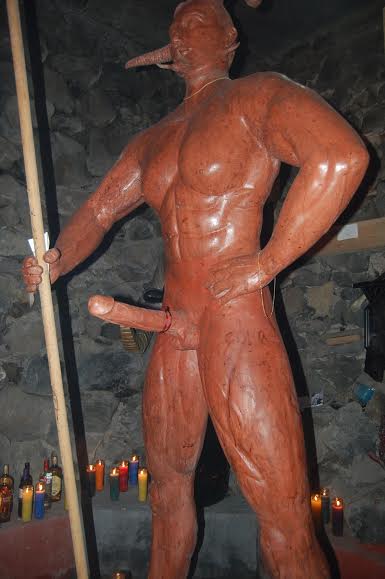 Es más antes de encender la Estrella que apunta hacía el cielo, que sirve para cerrar el portal y devolver al infierno a los Demonios, espíritus y entidades negativas que soltaron esa noche ; los Brujos entraron a la “Caverna del Encanto” que es una cueva artificial construida por manos humanas, única en el mundo, donde existe una estatua de más de dos metros de altura, que representa al Diablo, en forma de figura humana con el falo erecto, “porque Lucifer representa la sexualidad en el ser humano” aseguró, Marthén Berdón.