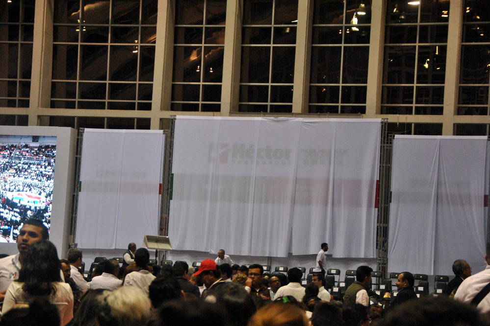 Un candidato que promete cambios aunque con un recorte significativo en el tiempo que duraría su administración, en un estado polémico, con un gobernador polémico, Héctor Yunes tiene que ser polémico, señalando que encarcelaría a los corruptos, que sacaría del gobierno a quien no sirva y en un acto donde lo que menos se ve es el logotipo del PRI.