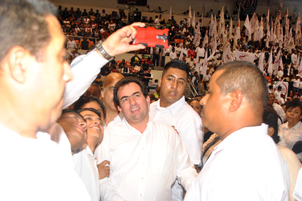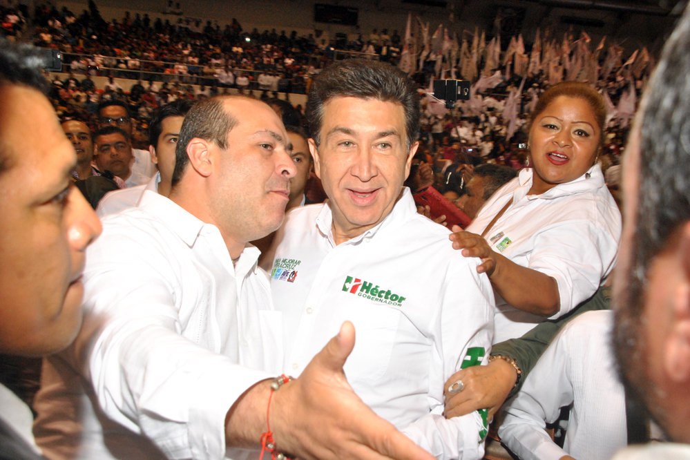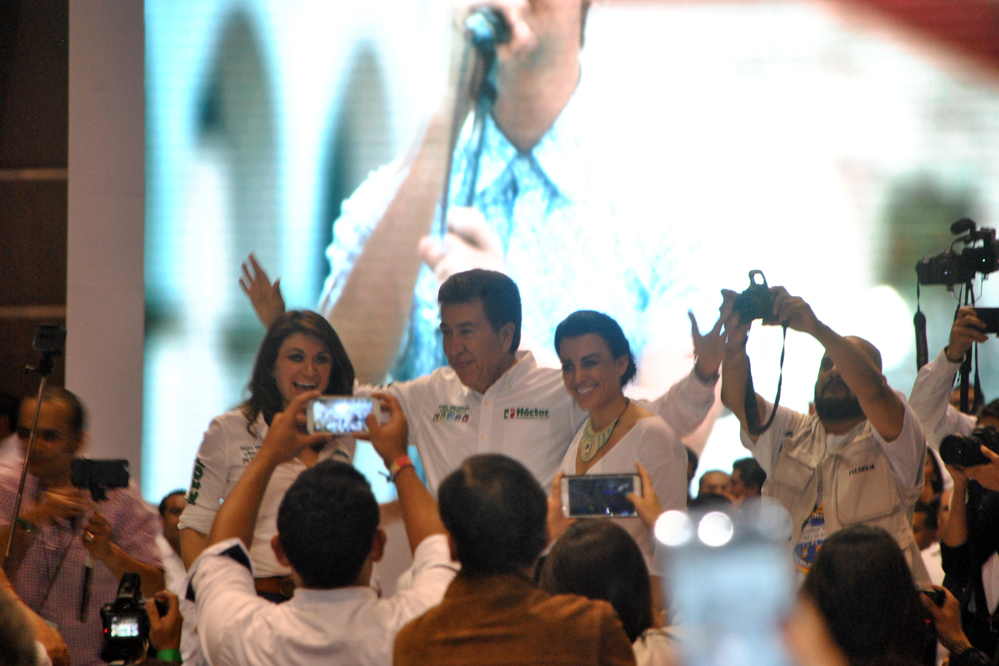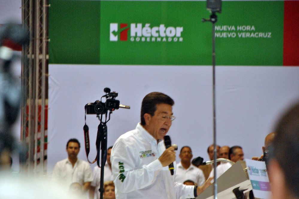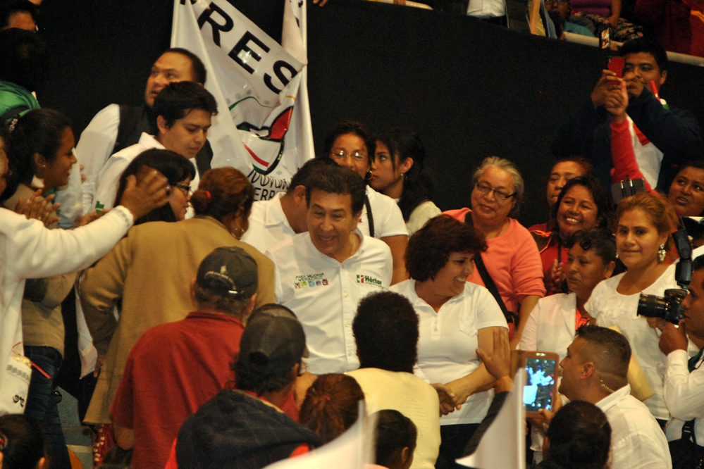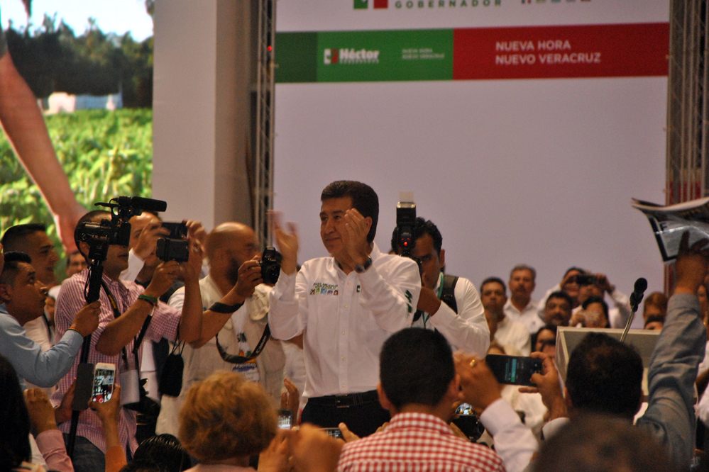 A la cuenta regresiva de 10, aparece el ya candidato de la alianza para mejorar Veracruz, saluda, abraza, lo jalan, la seguridad rechaza a los asistentes, pero Héctor les llama la atención, él es cercano, permite que lo toquen, que se tomen la foto, representa una nueva forma de político.
