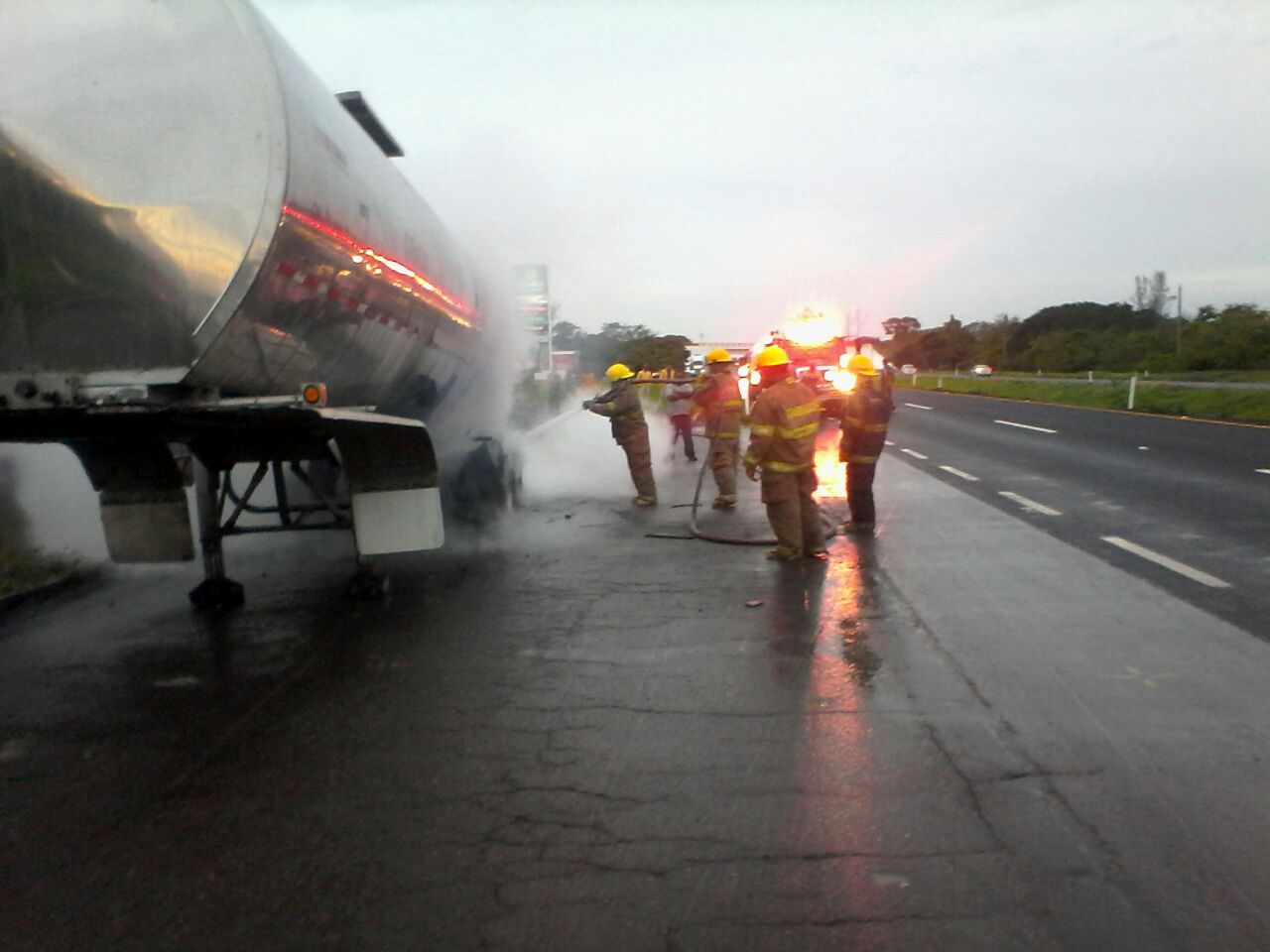 Personal de Protección Civil de Medellín de Bravo, acudió al llamado que le hicieran en la carretera federal de la cabeza olmeca a la tinaja, en el kilómetro ochenta, donde un tráiler que remolcaba dos cisternas, se comenzaba a incendiar, a consecuencia del calentamiento de las balatas de uno de los remolques.