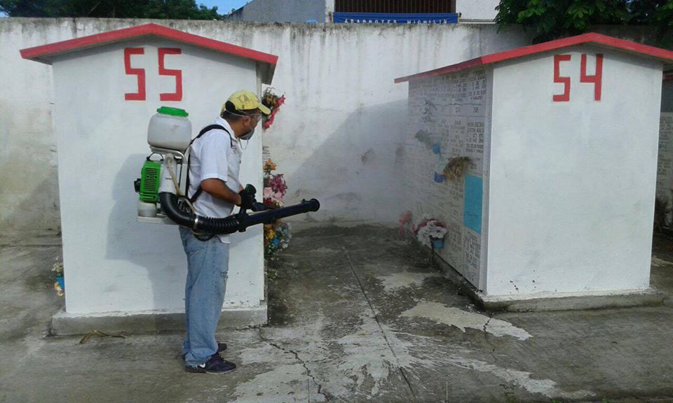 “Tuvimos complicaciones, pues los días han estado lluvioso y no se puede fumigar en esas condiciones, además, que es personal dela misma regiduría quienes trabajan directamente en el cementerio, asesorados por el personal de la jurisdicción sanitaria número 8, quienes a su vez, nos proporcionan el químico adecuado para fumigar, pues el equipo lo adquirimos para tener la capacidad de fumigar cuando sea necesario ”
