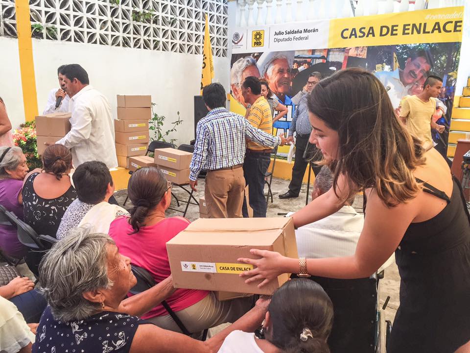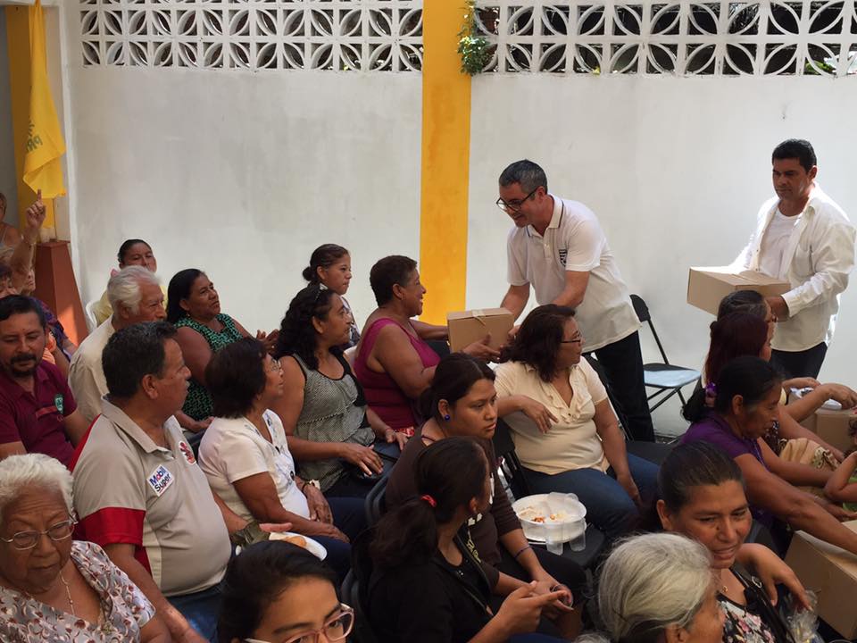 Los regidores noveno y décimo de Veracruz, Mario Cruz y Delta Tiburcio respectivamente así como el diputado federal Julio Saldaña, entregaron presentes a los abuelitos que asistieron al convivio.