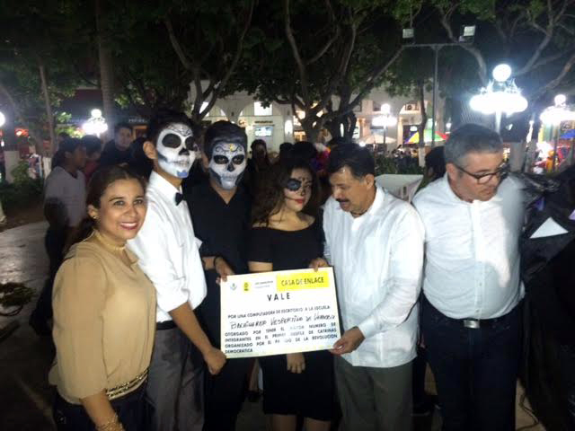 Acompañado de los regidores de Veracruz, Delta Tiburcio y Mario Cruz, realizaron el paseo con motivos del personaje de Posadas La Catrina, para posteriormente llegar al zócalo de la ciudad de Veracruz, donde se realizó el concurso para premiar a las mejores caracterizaciones del mexicanísimo personaje.