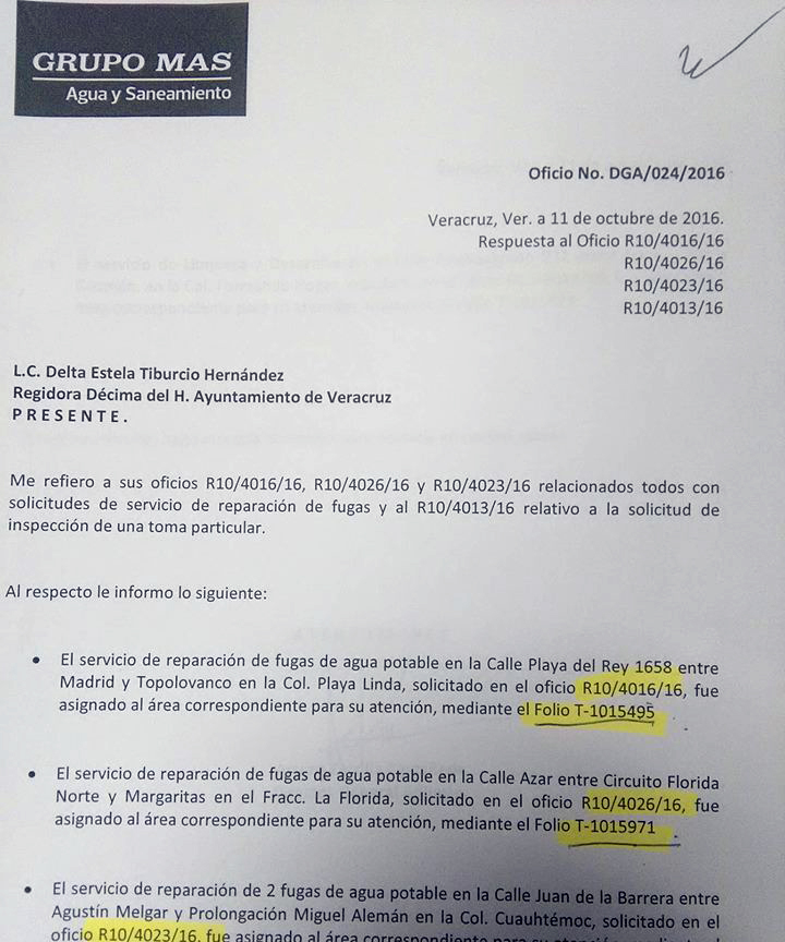 “Cuando estabas SAS, mensualmente daban un reporte de los trabajos realizados y estados de cuenta, en estos momentos, no hay ninguna referencia a lo ingresado, ni los reportes de fugas, desazolves y servicios a la ciudadanía, lo que me tiene a la expectativa de que  atendieron los reportes que por medio de la regiduría les hemos hecho llegar, solo nos dan un número de folio, pero no el  seguimiento” señaló la regidora con la comisión de agua de Veracruz