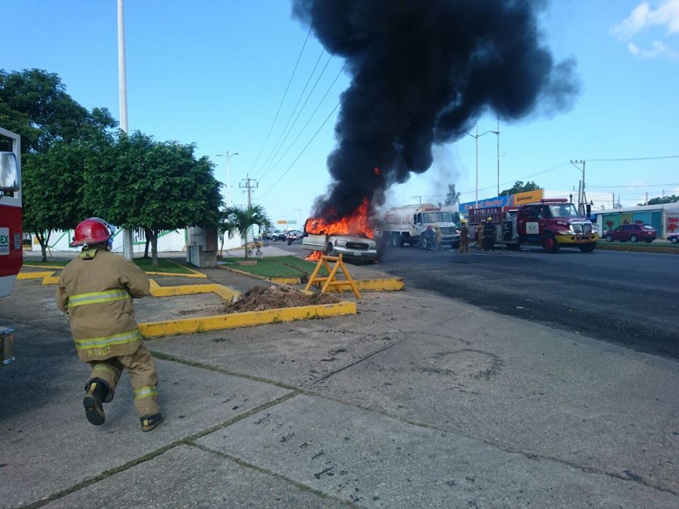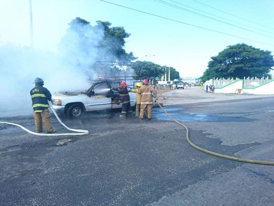 El mismo Montejo detalló, que se trató de una camioneta GMC Chevrolet de color blanco, con placas de circulación XY_30_375 de Veracruz, propiedad del ciudadano, José Pablo López Suriano de 58 años de edad, con domicilio en el vecino municipio de Nanchital, sobre la avenida Tepeyac número 20, la cual tuvo pérdida parcial en cabina y en la camper, que fue fabricada con material tipo lona; dijo el jefe Vulcano que el reporte lo recibieron a las 14:18 horas, por taxistas que pasaron a la base de bomberos.
