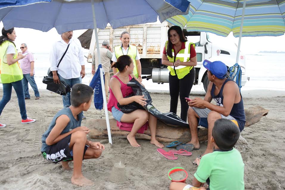 Asimismo, trabajando en la cultura de la concientización, personal de Servicios Públicos Municipales recorrieron las playas, obsequiando a los bañistas bolsas y solicitándoles de manera atenta, depositaran en dichas bolsas la basura que pudiera generarse tras su estancia en estas zonas.