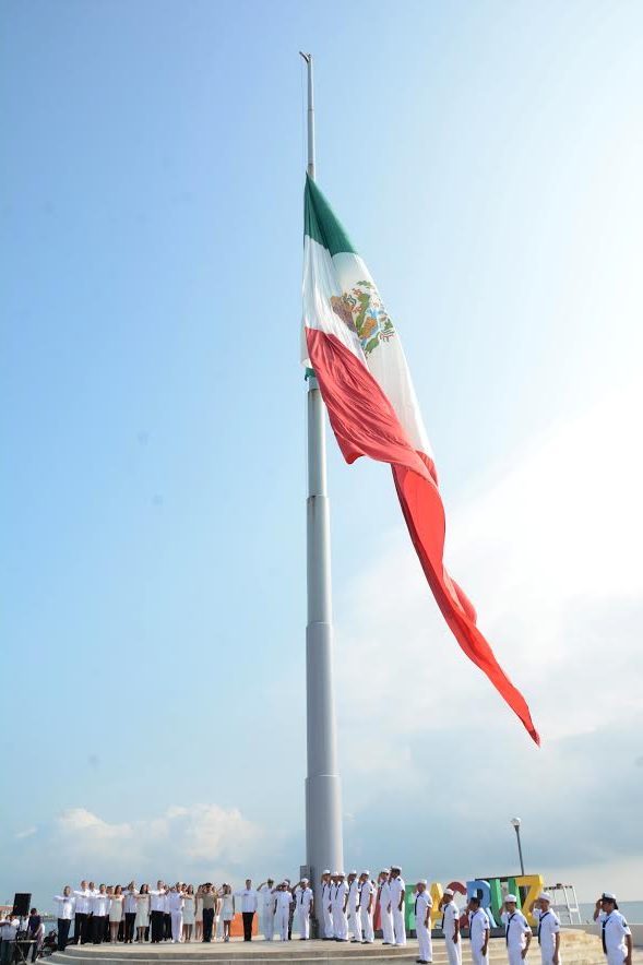 El Presidente Municipal de Veracruz, Ramón Poo Gil y la Presidenta del DIF, Maricruz Barreda Cobo, encabezaron el acto de honores a la Bandera Nacional realizado en Plaza de la Soberanía, con motivo del 498 Aniversario de la Fundación de Veracruz.
