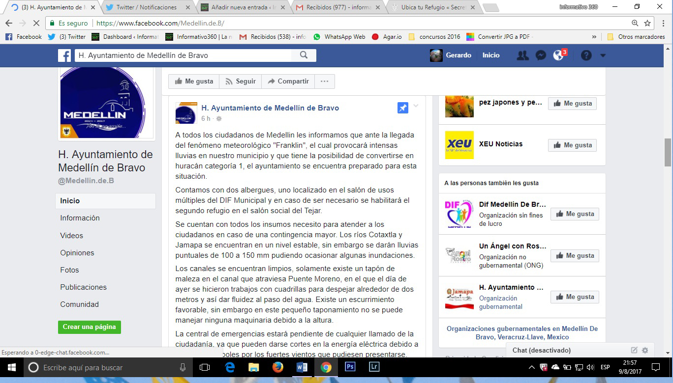A pesar de haber señalado que están listos ante las contingencias derivadas del huracán Franklin, el ayuntamiento de Medellín de Bravo, ignora a sus habitantes, pues a pesar que señalan como instalados los albergues en caso de un desalojo, la secretaria de Protección Civil, no tiene idea de donde se puedan ubicar, pues no aparecen en su página oficial.