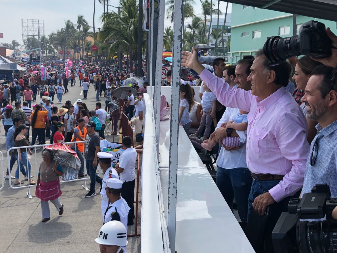 Este desfile contó con la presencia del Gobernador del Estado, Miguel Ángel Yunes Linares, del Presidente Municipal de Veracruz, Fernando Yunes Márquez, y de su esposa, Mariela Lohmann de Yunes; el cual inició a las 11:00 horas en dirección de norte a sur.