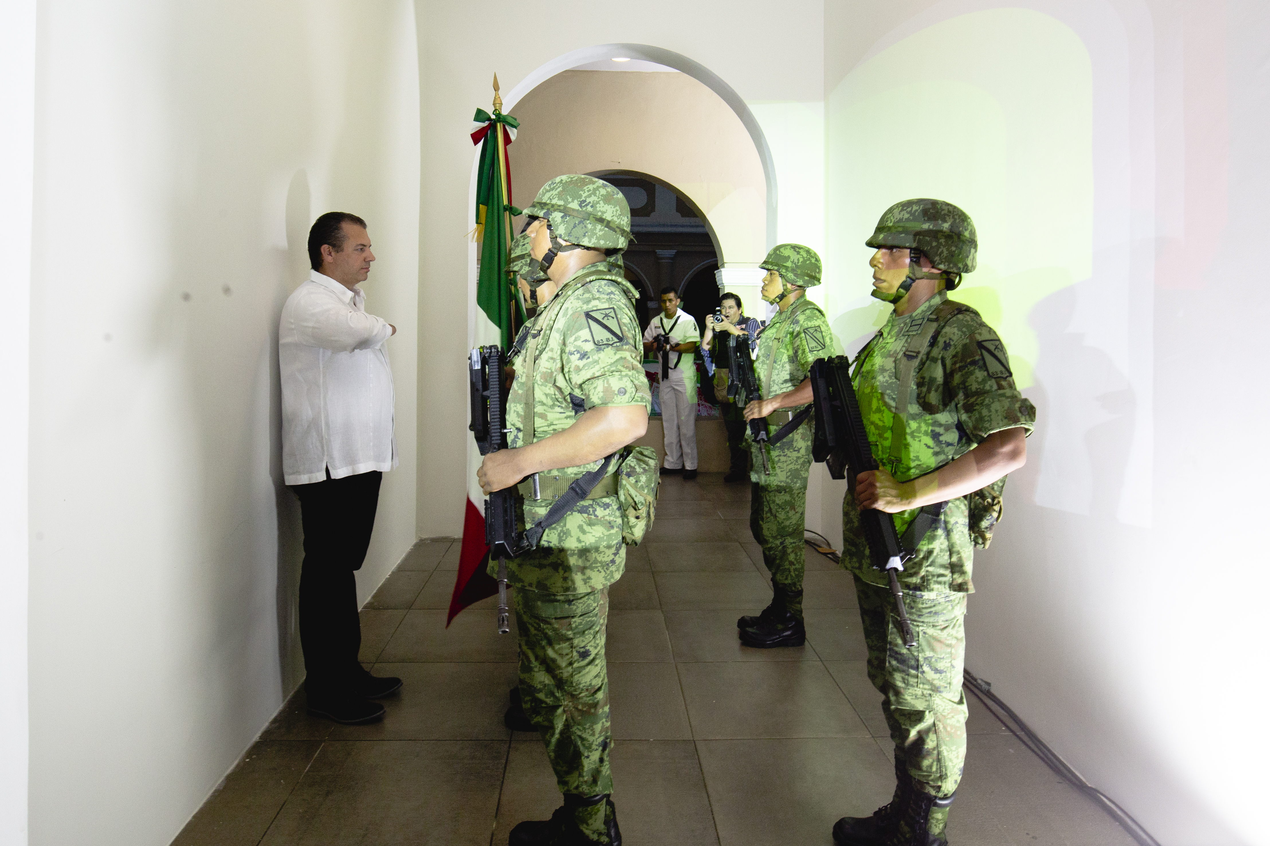 El Alcalde de Boca del Río, caminó hacia el balcón junto a su esposa Karla Adriana Robles de Alonso y su hijo Sebastián Alonso Robles; estuvo acompañado en este importante acto por el secretario de Finanzas y Planeación del Estado de Veracruz, Dr. Guillermo Moreno Chazarini; el Jefe del Estado Mayor de la Sexta Región Militar, Gral. Brig. Dem. Juan Arturo Cordero Gómez; Jefe del Estado Mayor de la Primera Región Naval, Vicealmirante CG. D.E.M. José Demuner Flores; el Diputado Federal, Carlos Alberto Valenzuela Gonález; así como de la Síndica Única del H. Ayuntamiento, Iliana Liseth León Huesca; el Cabildo y el gabinete municipal.