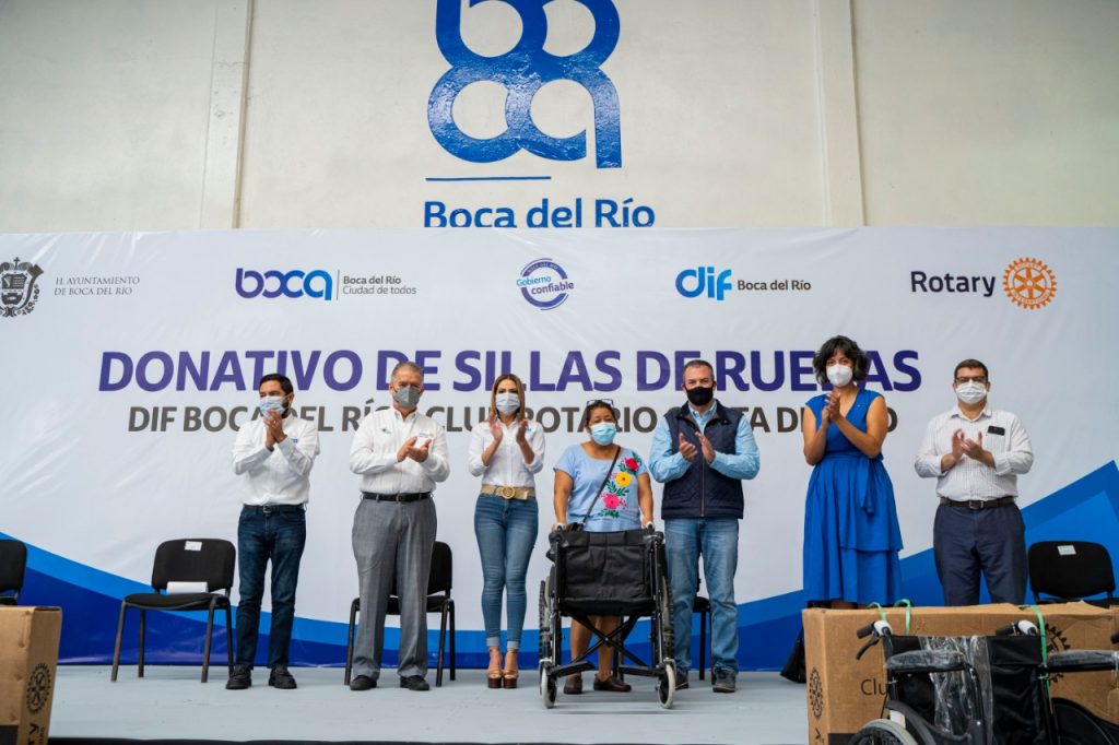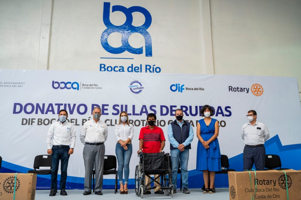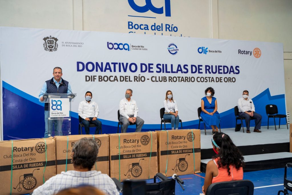 La mañana de este jueves el alcalde de Boca del Río, Humberto Alonso Morelli acompañado por la presidenta del DIF Municipal boqueño Karla Robles de Alonso recibieron por parte del Club Rotario Costa de Oro el donativo de 57 sillas de ruedas para beneficiar a las personas que lo necesitan en la ciudad.