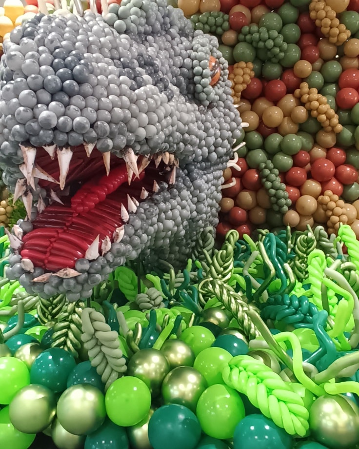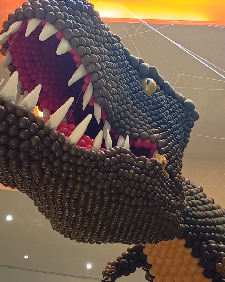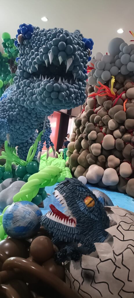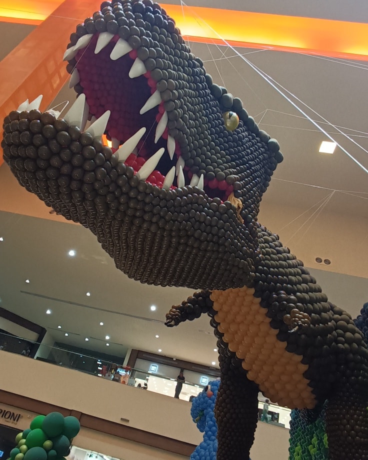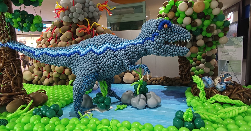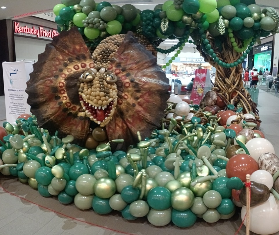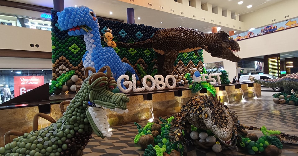 Una extensa colección de dinosaurios hechos de globos se encuentran en las instalaciones de plaza El Dorado en Alvarado Veracruz, donde la compañía sempertex puso en exhibición a los animales prehistóricos ,algunos de más de 5 metros de alto.
