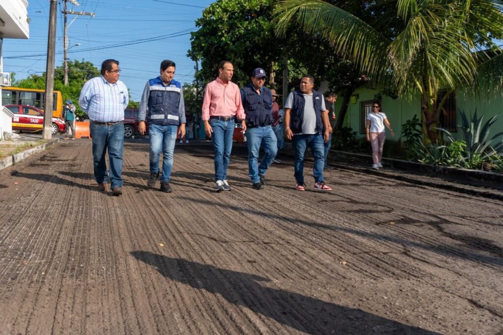 El Presidente Municipal de Boca del Río, Juan Manuel Unánue Abascal, recorrió la obra de pavimentación con concreto asfáltico de la calle Irene Bourel, en la colonia Primero de Mayo Norte.